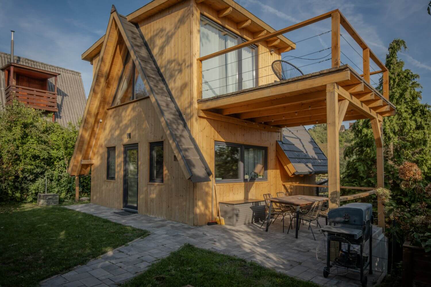 A Zebi Vendégház a festői Dunakanyarban, Zebegényben helyezkedik el, Budapesttől csupán 60 km-re. Egy régi A-frame stílusú házat újítottunk fel természetes anyagokkal, kihasználva a környezeti adottságokat. A kisház alsó szintjén kapott helyet a konyha, a nappali ágyazható kanapéval, a fürdőszoba és az erdőre néző terasz jakuzzival. Az emeleten a 2 személyes hálószoba, a pihenősarok és egy dunai panorámás terasz található. Fedezd fel a 4 személyes vendégházat és hagyd, hogy elragadjon a varázsa.
